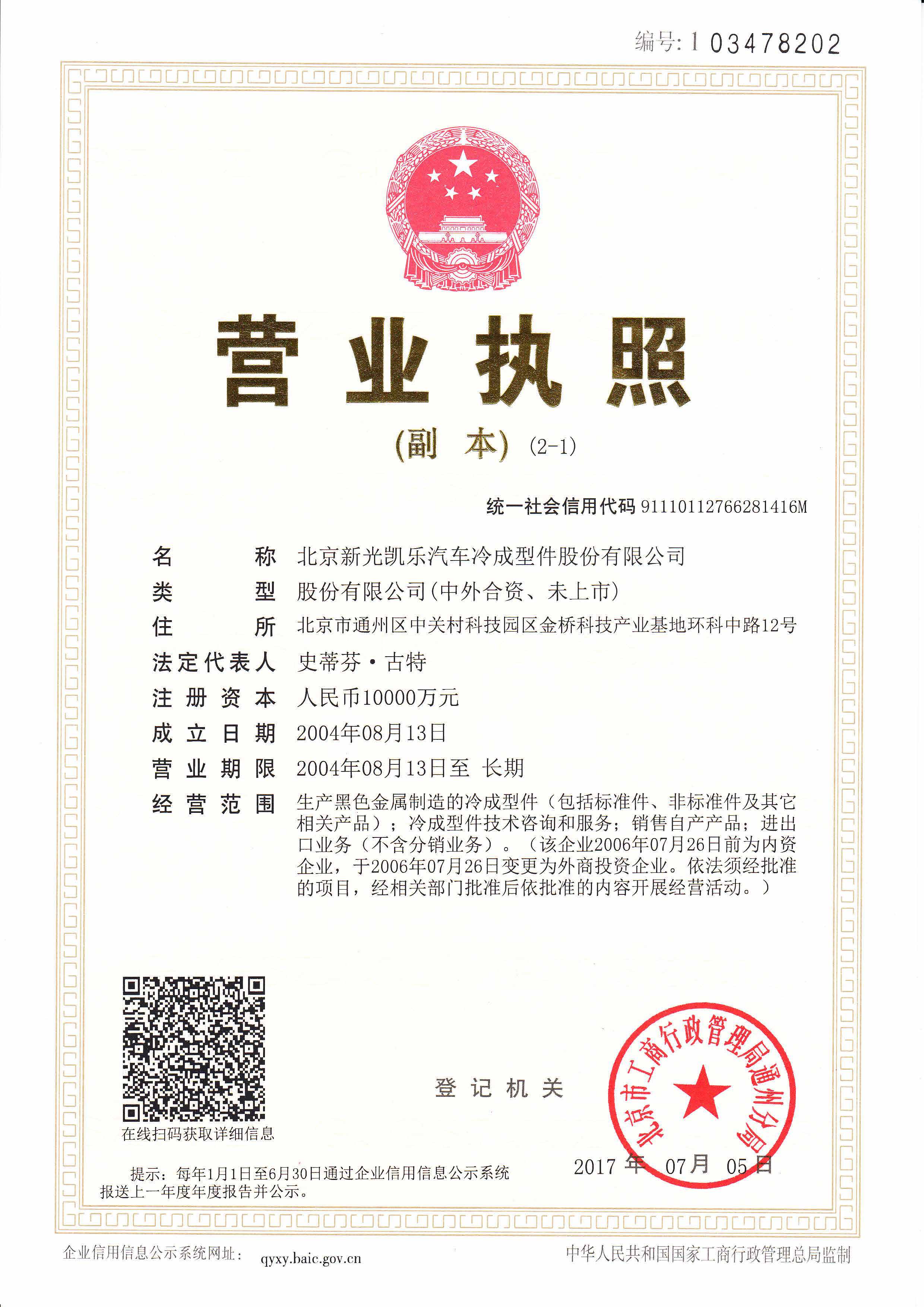 北京新光凱樂(lè)(Singu Keller)汽車(chē)?yán)涑尚图煞萦邢薰?br> 是由邢臺(tái)鋼鐵有限責(zé)任公司和德國(guó) A&E KELLER公司合資組建, 開(kāi)發(fā)生產(chǎn)汽車(chē)?yán)涑尚图捌渌芎谏饘僦瞥善贰?